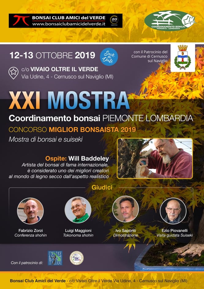 La mostra è patrocinata da UBI Unione Bonsaisti Italiani, IBS Collegio Nazionale Istruttori del Bonsai e del Suiseki, Comune di Cernusco sul Naviglio.